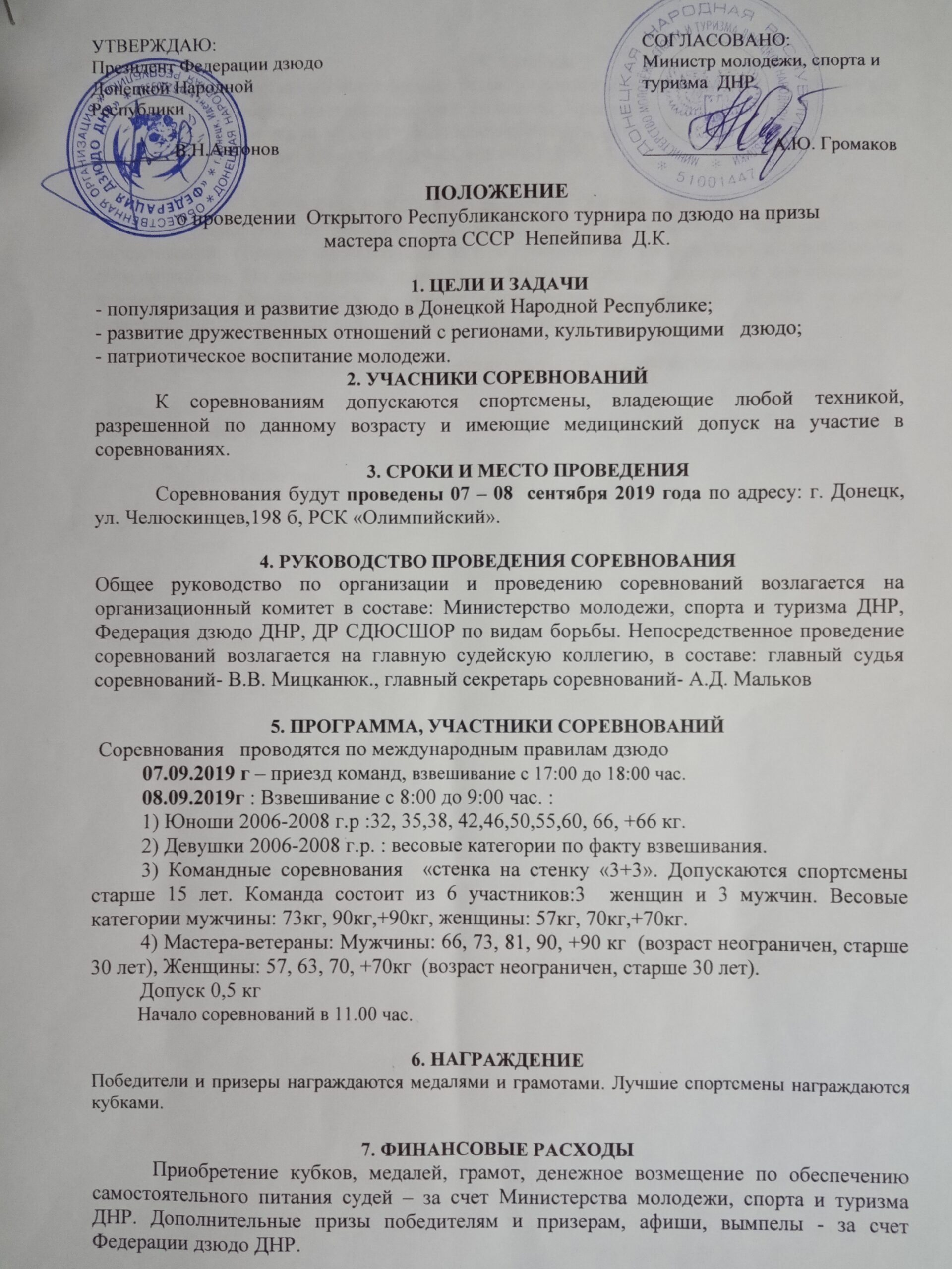 7-8.09.2019 (г. Донецк): Открытый Республиканский турнир на призы МС СССР Непейпива Д.К. Положение можно скачать ЗДЕСЬ.